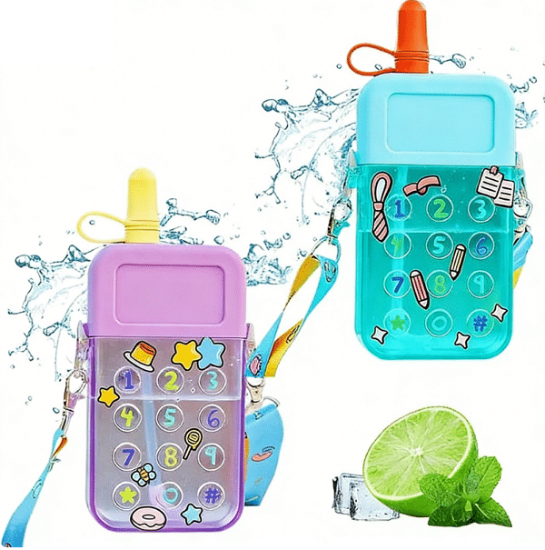 This cute bottle makes kids actually want to drink water. It comes in playful mobile phone shapes, so it catches attention fast and feels like a fun accessory, not a chore. It’s small and kid-friendly at 300 ml, and the adjustable shoulder strap with hooks lets a child wear it crossbody for school, the park, camping, or the beach. Safety matters too: it uses food-grade Tritan plastic and is BPA-free, so parents can feel more comfortable about daily use. The lid is made to seal well when closed the right way, which helps prevent leaks in a backpack, and the straw-style drinking makes sipping easier for small kids.